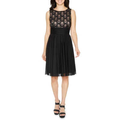 Jessica howard sleeveless shantung fit and flare ruffle dres bateau