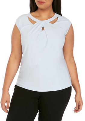 Kasper plus size u neck foil print cam