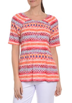 Kim Rogers 3/4 Sleeve Liano Peasant Top.An eye-catching print makes this Kim Rogers peasant top a closet staple for effortless style options.