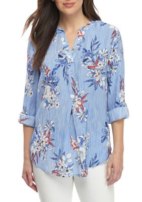Kim rogers short sleeve liano tropical print to near