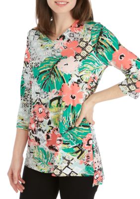New Directions® Plus Size Short Sleeve Printed Swing Description: Finished with a colorful hem, this short sleeve swing dress by New Directions® offers a curve-flattering silhouette in . rat pack fashion ladies
