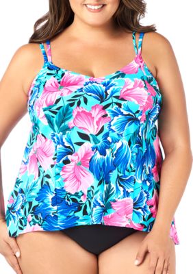 Size an island tile print and flyaway design, this tankini from each brand, now available in plus sizes.